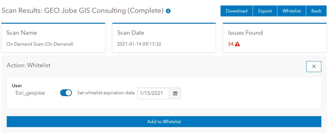 Whitelist functionality has been expanded to include an optional expiration date to entries. For example, if a user was going on vacation and you didn’t want them to be flagged as an issue for user inactivity scans for the duration, you could set a whitelist to expire on their return date, and continue monitoring as usual after that date.