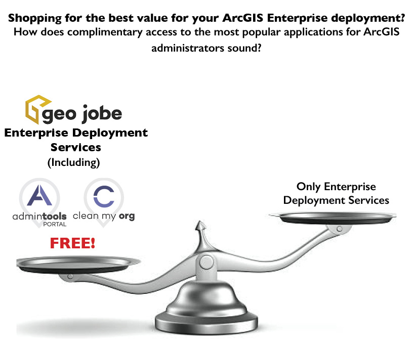 GEO Jobe is excited to announce a new initiative for 2020 where customers who choose to simplify their ArcGIS Enterprise deployment will be receiving licenses of GEO Jobe Products included for a year for free as part of GEO Jobe’s Enterprise Deployment Services in the GEOPowered Cloud. This includes Admin Tools for ArcGIS Enterprise Portal as well as Clean My Org, and the upcoming Backup My Org application.